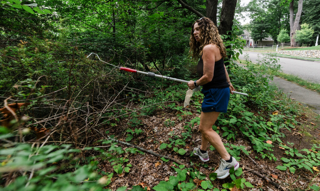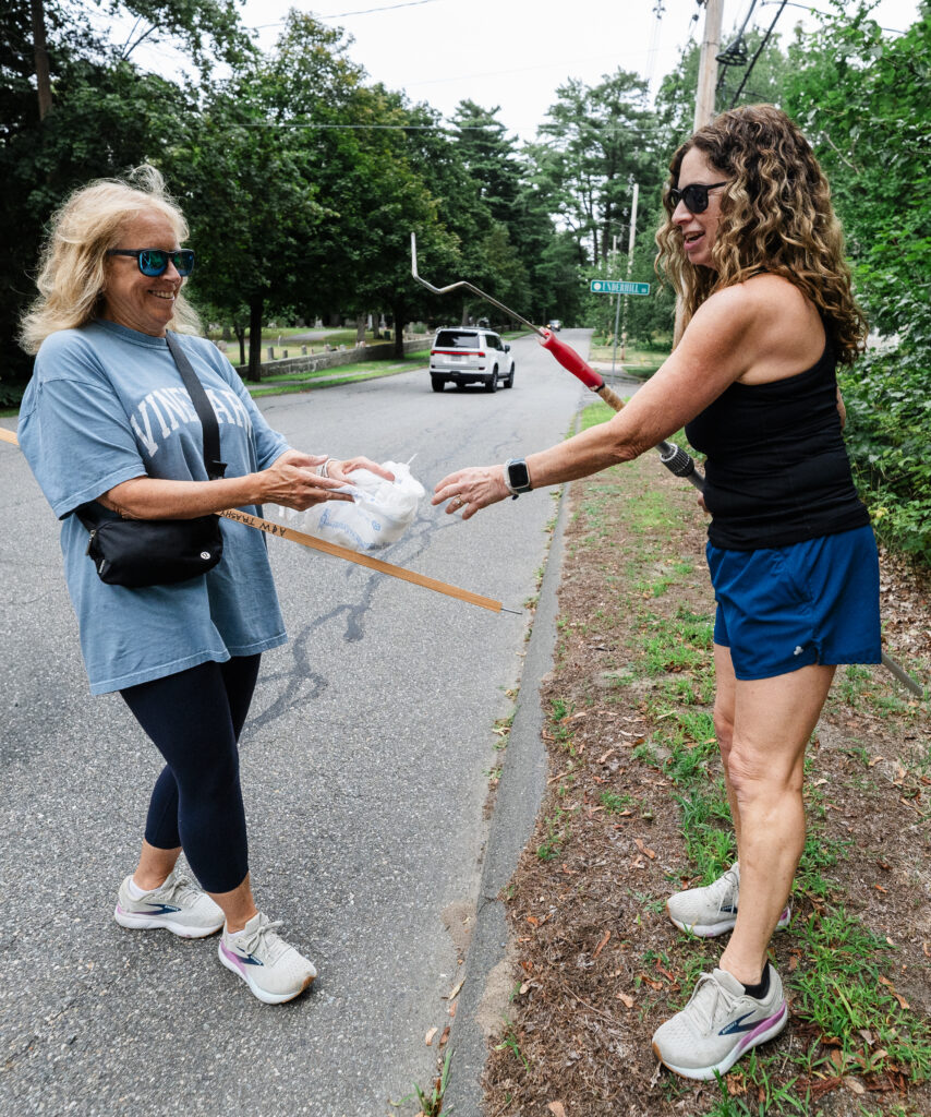 Instead of water bottles and earbuds, the two longtime friends carry trash bags and picker sticks, removing litter from curbs, sidewalks, and even conservation land.